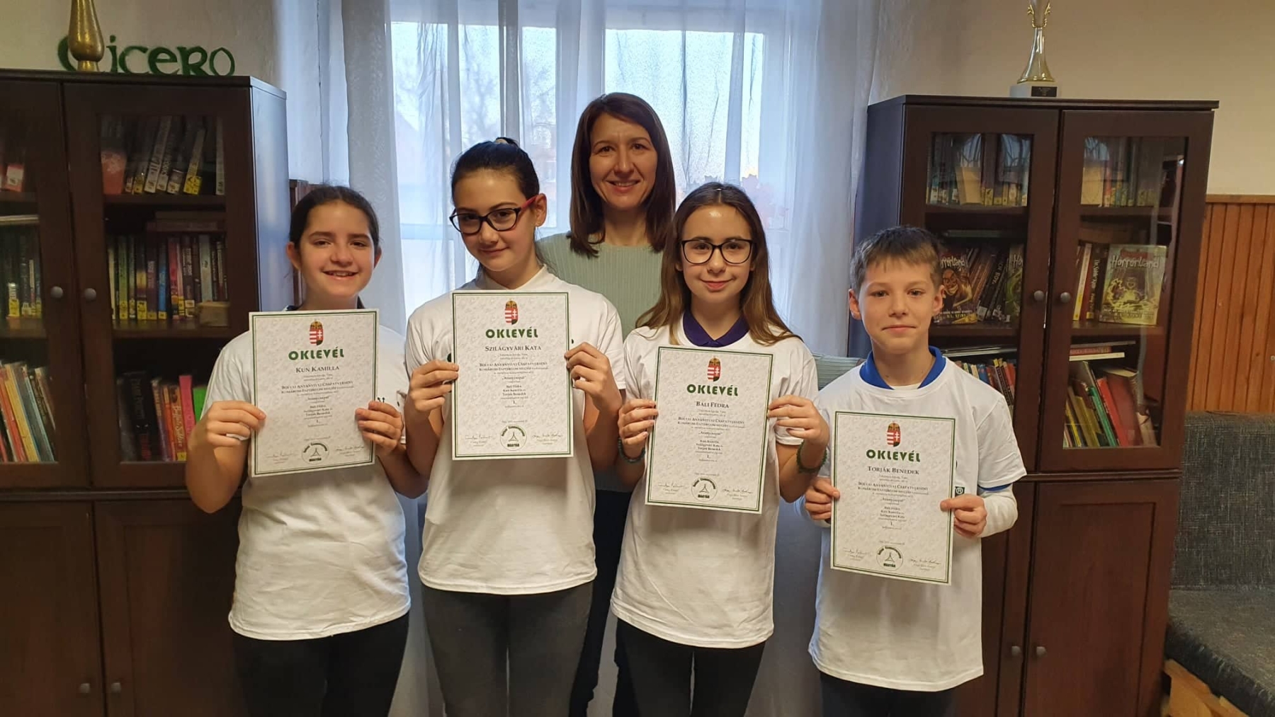 A hetedik osztályosok 4. helyezést értek el Kun Kamilla, Szilágyvári Kata, Tábori Nóra és Torják Benedek részvételével.