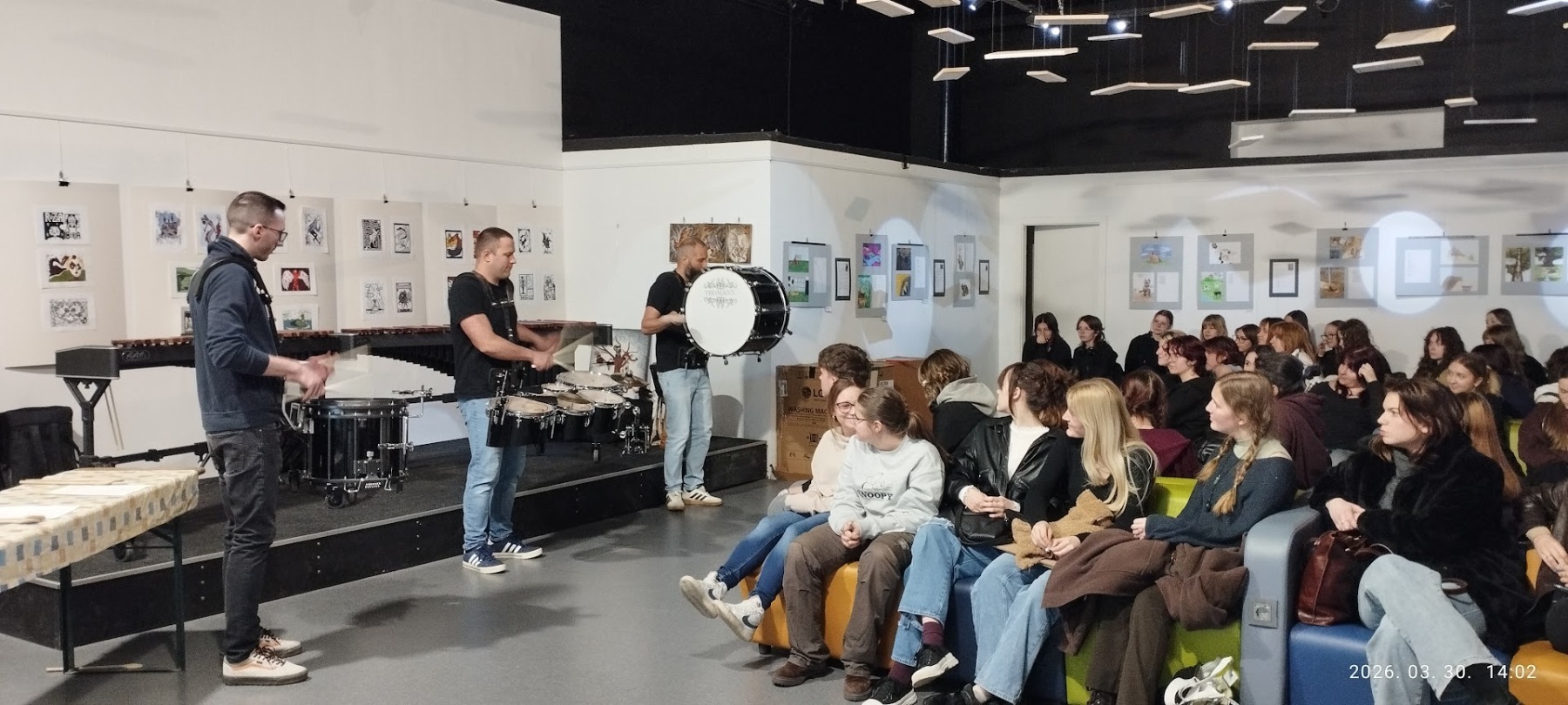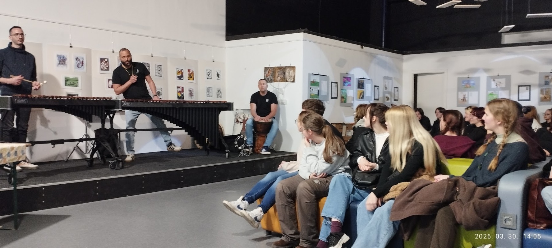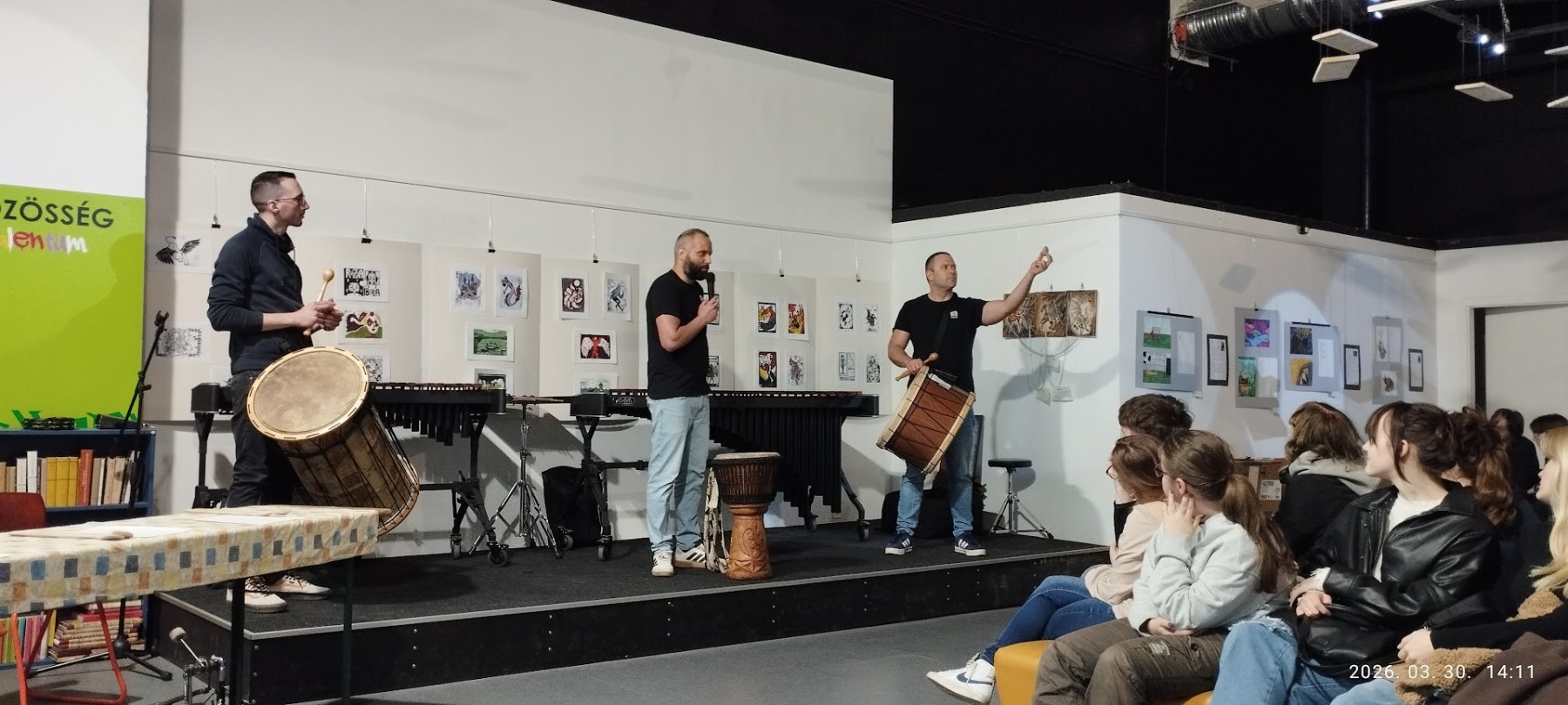 Március 30-án, hétfőn a szakgimnázium diákjai egy rendhagyó esemény részesei lehettek. A dobokat (és a dobolásra alkalmas egyéb tárgyakat) Májer Dániel, Józsa Bálint és Kovács Árpád szólaltatták meg. A koncert a Nemzeti Kulturális Támogatáskezelő támogatásával jöhetett létre. Köszönjük a lehetőséget!