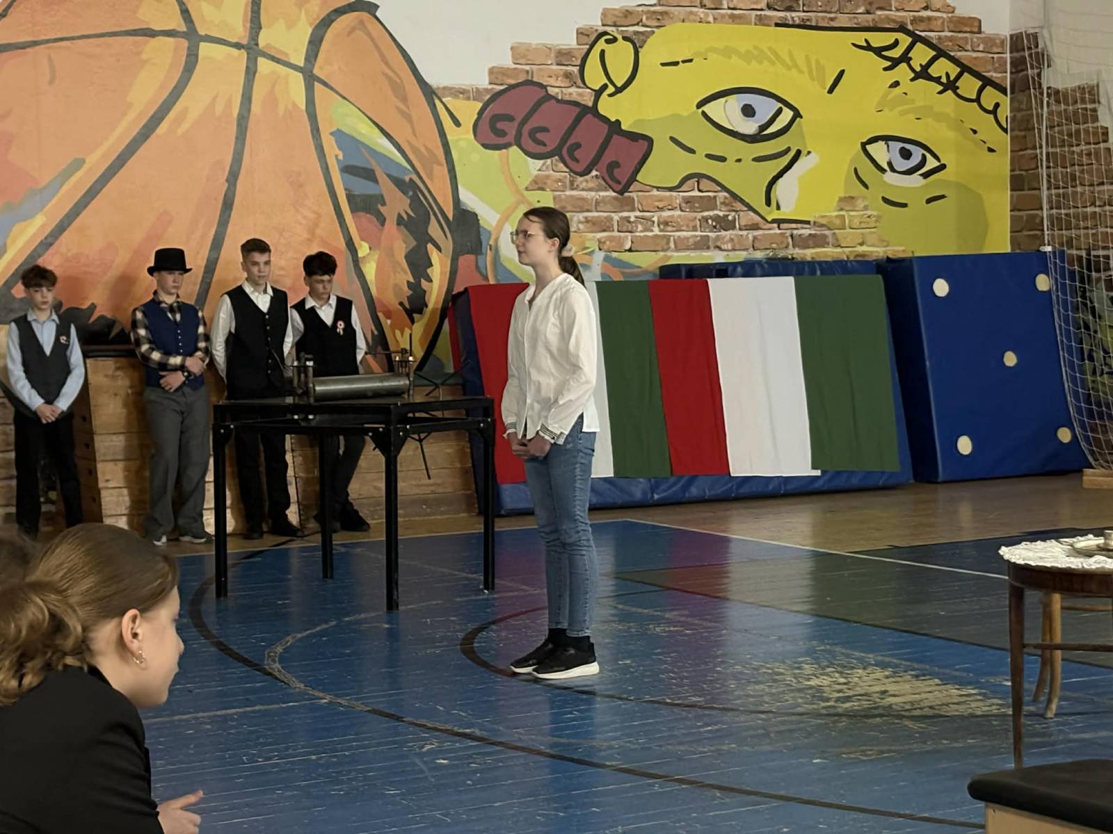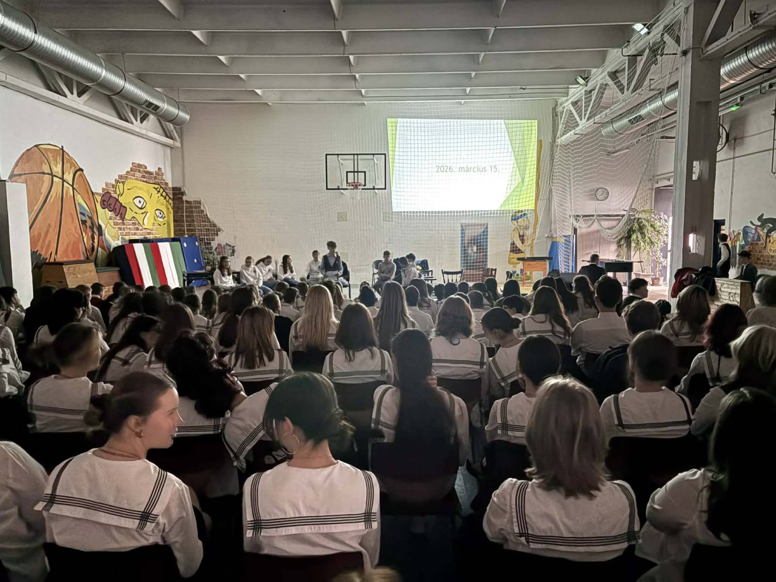 Március 15-i műsorunkat idén is a 7. osztályos tanulók szervezték. Ez alkalommal a szereplők és a közönség egy időutazás keretein belül élhették át az 1848. március 15-i eseményeket.