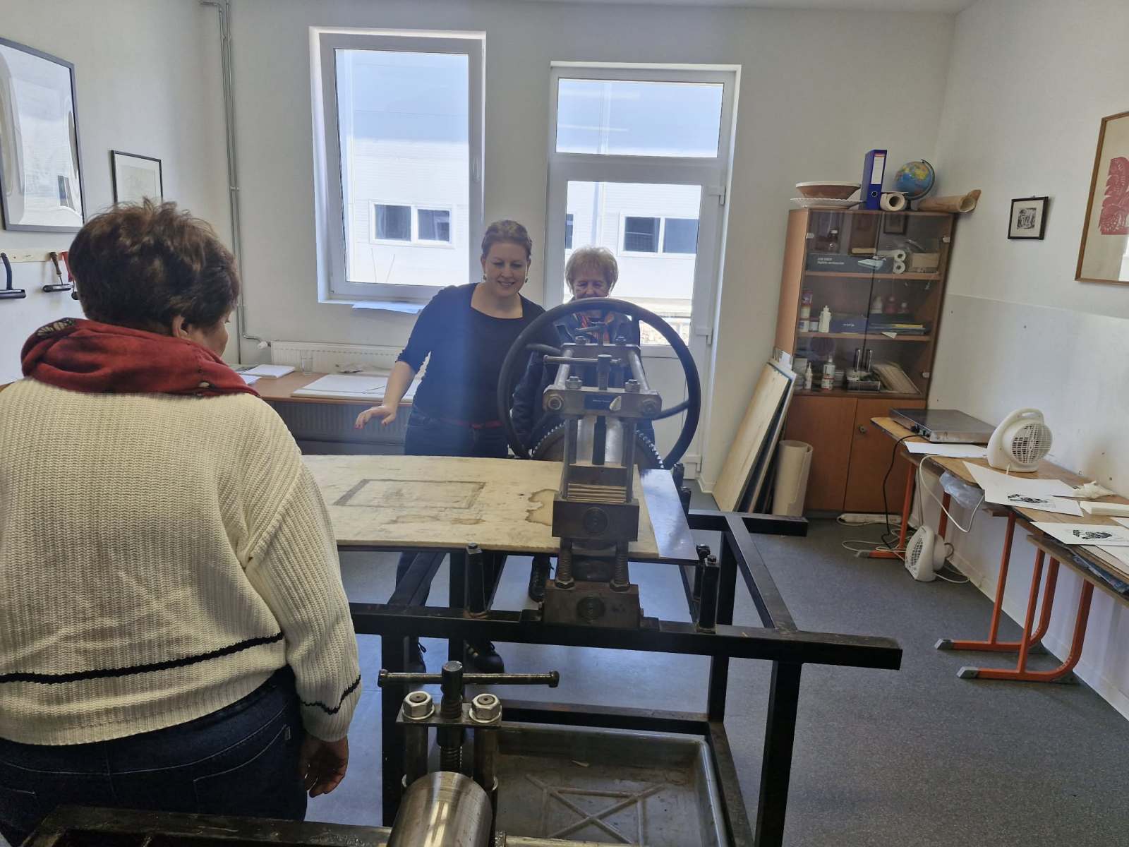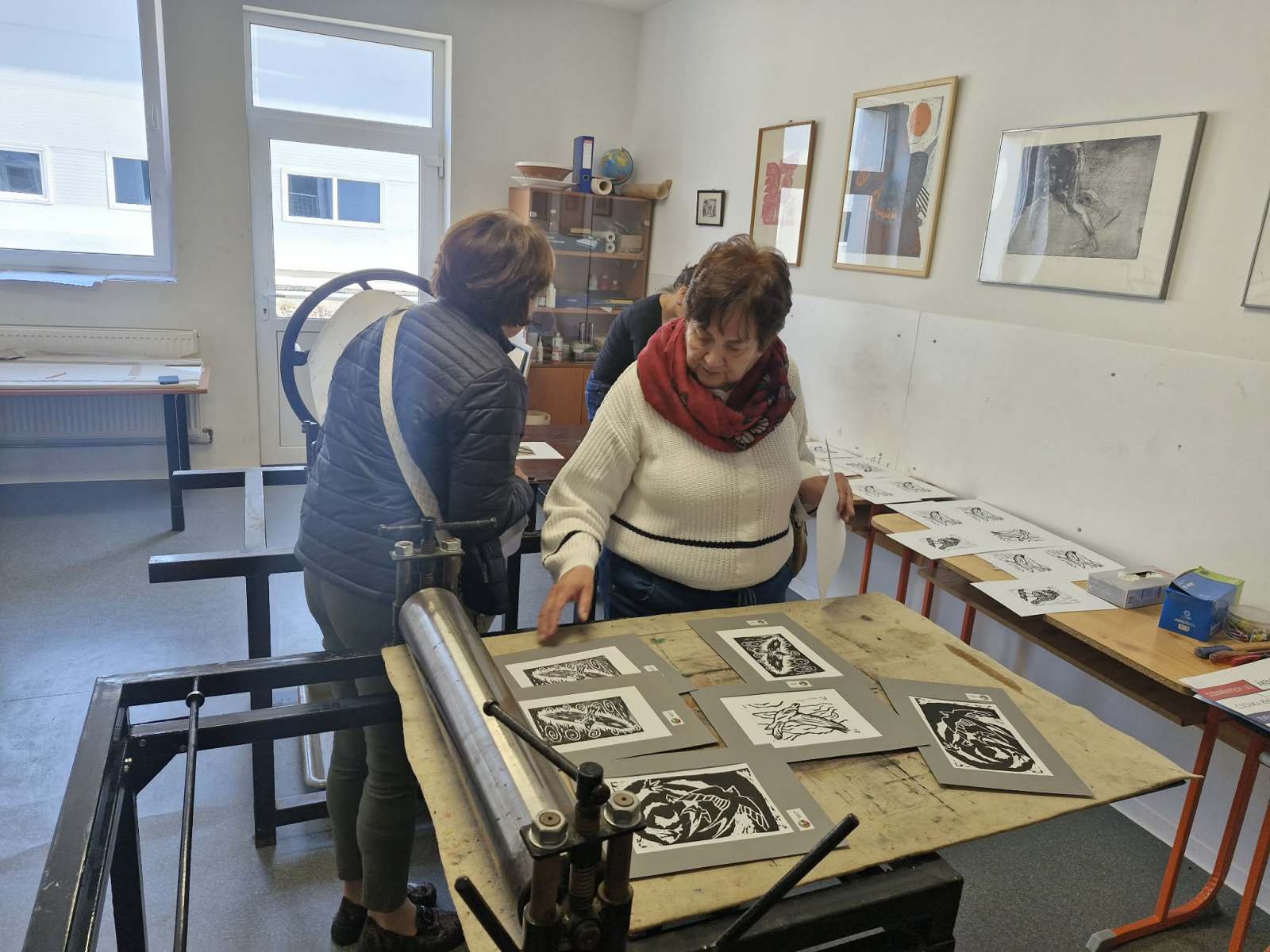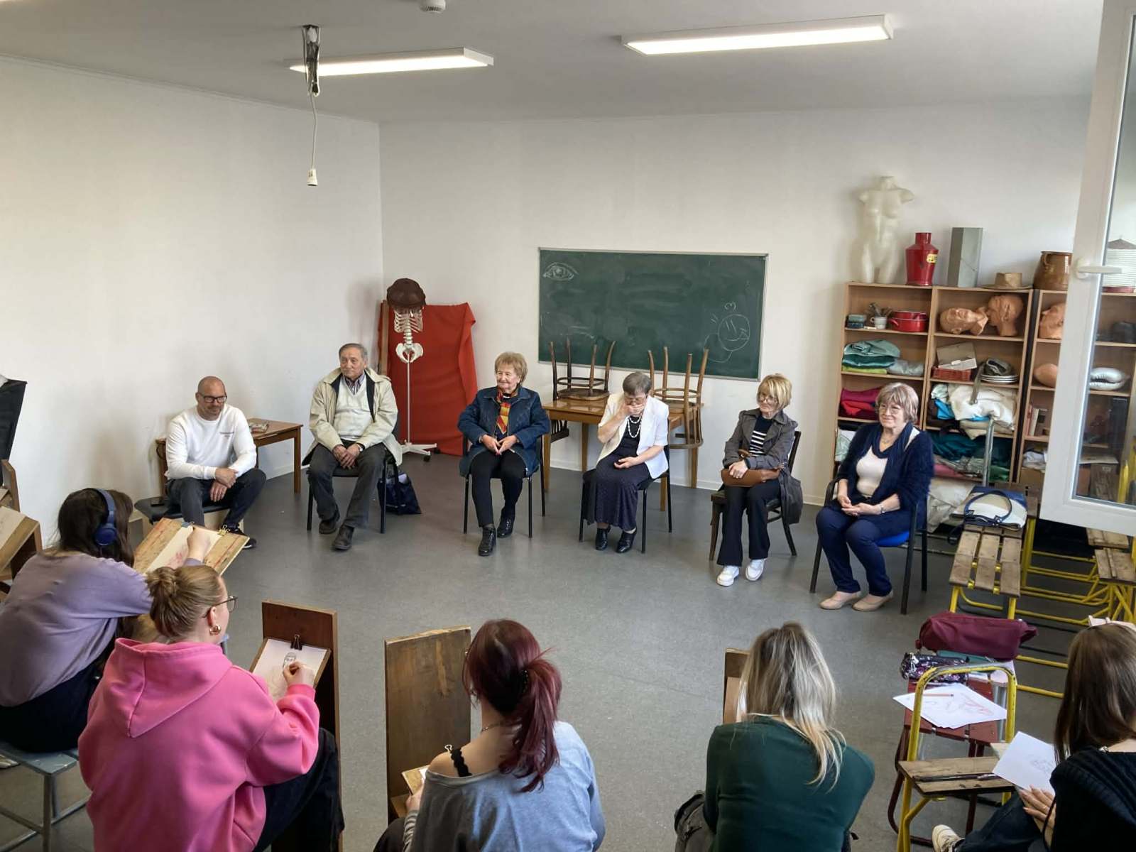 Megyei iskolák nyugdíjas igazgatói látogattak el szakgimnáziumunkba a héten. A délelőtt folyamán az épület bejárása közben megismerték intézményünk és jelenlegi arculatunk kialakításának történetét, szakmai képzésünk felépítését, beszélgettek projektjeinkről, az alapítványi létről, a diákokról, az alkotásról. Bepillanthattak a szakmai órákba, ahol krokik készültek róluk, és kipróbálhatták grafikai műhelyünket is. Általános iskolánkból a 3. és 4. osztályosok egy zenés produkcióval lepték meg őket. Nagy öröm volt számunkra, hogy a látogatók között volt Fogelné Nagy Éva, a Talentum alapítója is.