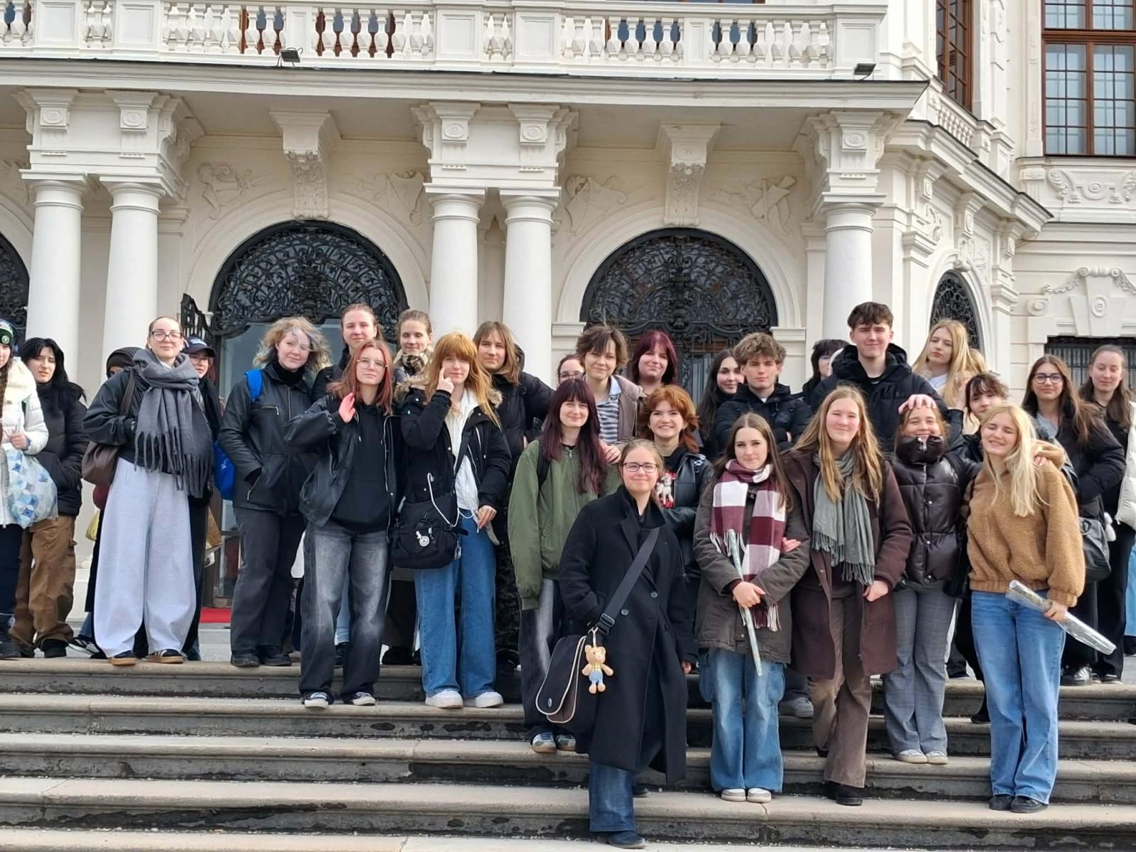 A tavaszi szünet előtt középiskolásaink ismét az osztrák fővárosba látogattak, az úticél ezúttal a Belvedere-kastély és annak kiállításai voltak. Először az Alsó-Belvedere tárlataival ismerkedtek, majd a Felső-Belvedere titkait fedezték fel egy kvízjáték segítségével. A nap végén természetesen mindenkinek jól esett a kis szabad program.