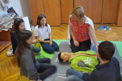 A héten 4. osztályosaink egy interaktív egészségügyi foglalkozáson vettek részt. Az egészségügyi pálya sokszínűségének bemutatása négy helyszínen történt forgószínpadszerűen. A Szent Borbála Kórház dolgozói – Barczai-Wágner Anikó (ápolási igazgatóhelyettes), Gödölle Tünde (SBO), Hertlik Ida (csecsemőosztály) és Murányi Anikó (MESZK Komárom-Esztergom vármegye oktatási referense) az állomásokon bemutatták a sebek fajtáit és a sebellátást, a mentőhívást és az újraélesztést, a csecsemőápolást és újszülött fejlődését egyaránt. A gyerekek emellett az úgynevezett részeg- és drogos szemüvegek felvételével megtapasztalhatták az adott állapot megváltozott látási és viselkedési körülményeit is. Az egész osztály nagyon jól érezte magát, ez aktivitásukon is látszott.