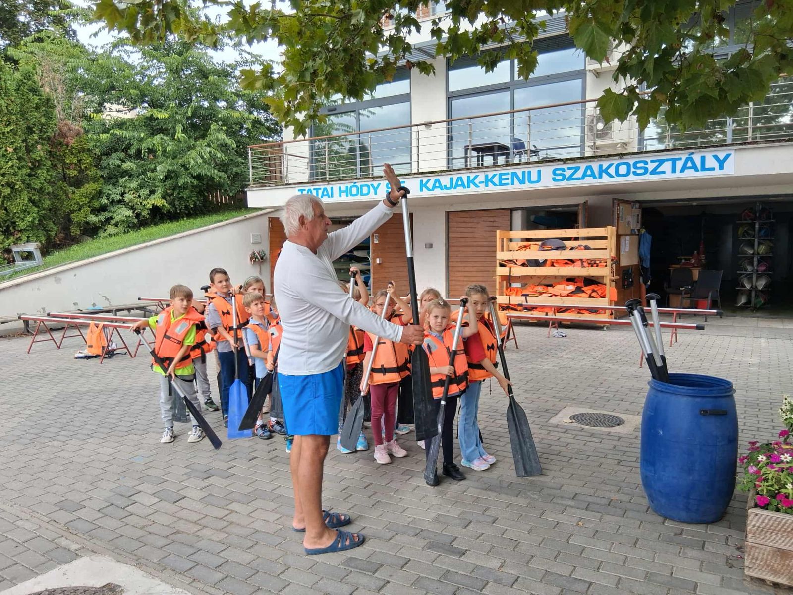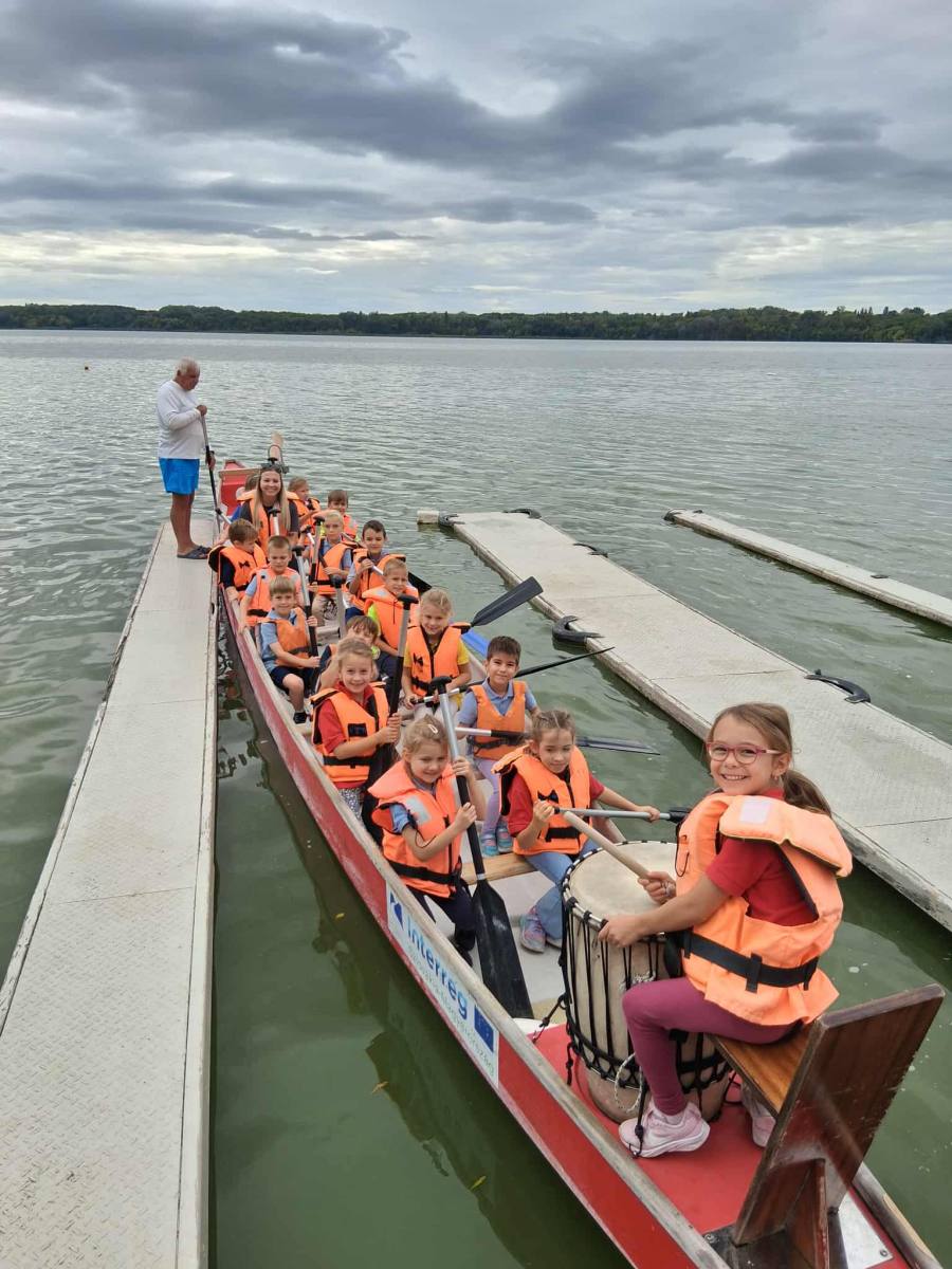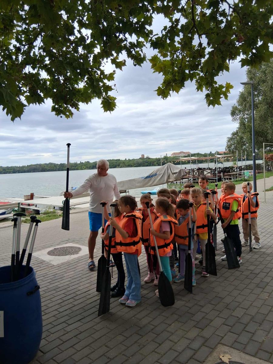 Kicsi elsőseink sárkányhajózni voltak a Lapátos Vízi Tesióra programjának keretein belül. Porci bácsi rövid felkészítést tartott a gyerekeknek a lapátfogásról, az evezésről és már szelték is a hajóval az Öreg-tó habjait. Iskolánk több osztálya is regisztrált a programra. Mindenkinek maradandó élményt nyújtott.